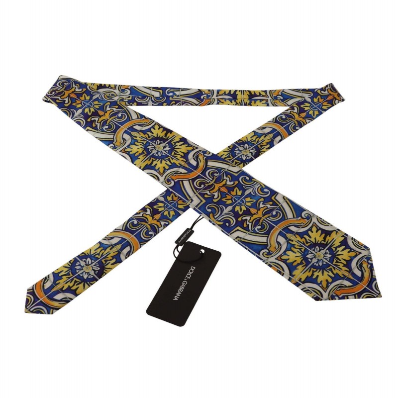 Assolutamente sbalorditiva, 100% autentica, nuova di zecca con etichette, cravatta Dolce & Gabbana, motivo maiolica multicolore, 100% seta, prodotta in Italia, larghezza: 10 cm, accessorio versatile, materiale: 100% seta