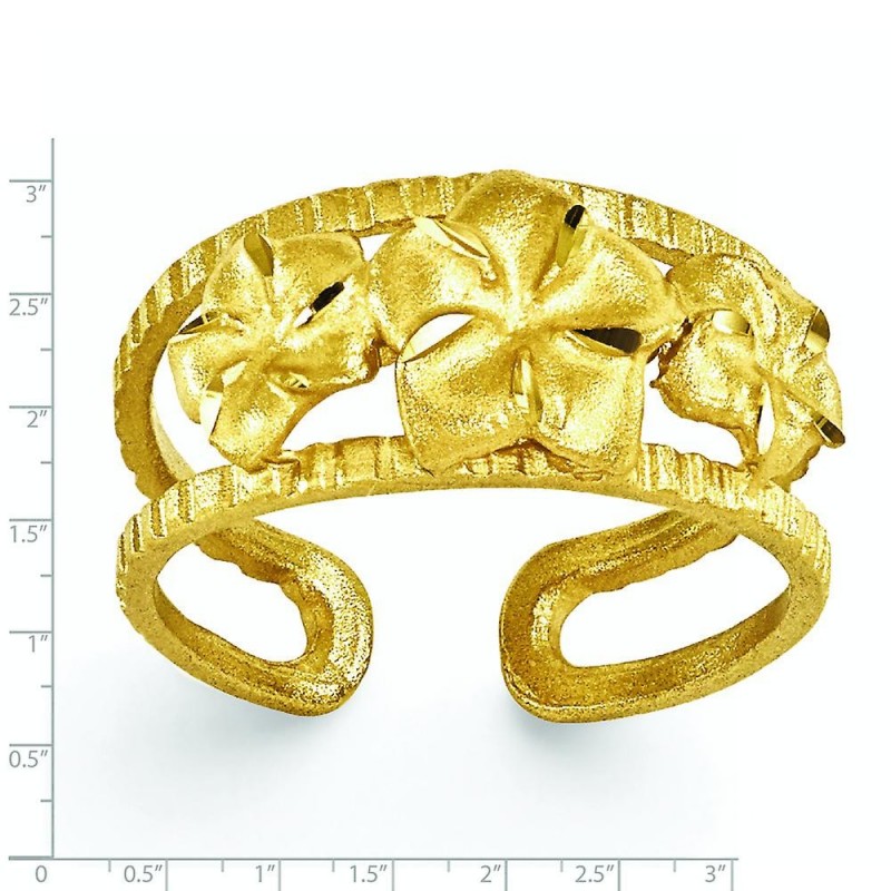 Anello per dita dei piedi in oro giallo 14k con plumeria - 1,8 grammi in oro giallo 14k - Attributi del prodotto: - Taglio brillante - Satinato - Scatola portagioie pronta per il regalo inclusa - Larghezza della fascia: 3-8 mm (rastremata) - Caratteristica: Solido -